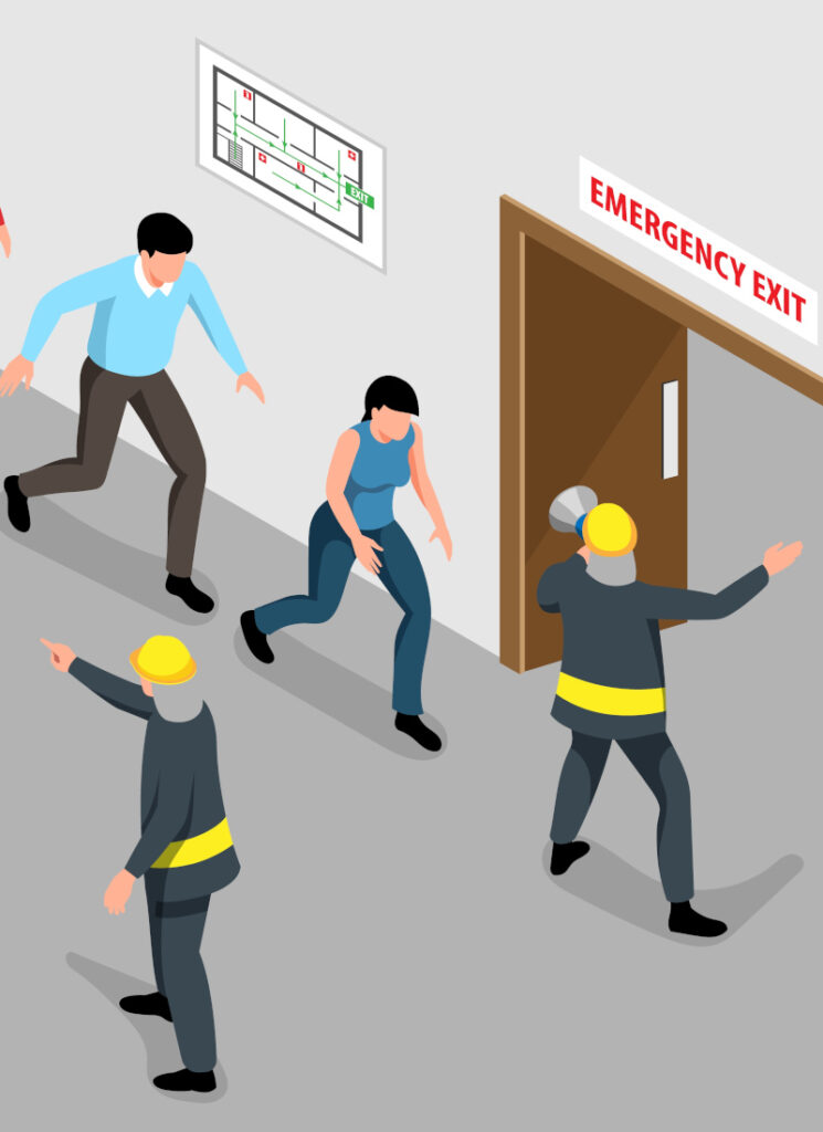 Imagine que você está trabalhando ou estudando, e de repente, você percebe um cheiro de fumaça e ouve alarmes disparando. O que você faria? É importante estar atento e ligeiro, mas é essencial manter a calma. Primeiro, identifique o perigo, depois comunique as autoridades (corpo de bombeiros – 193) e siga suas orientações.